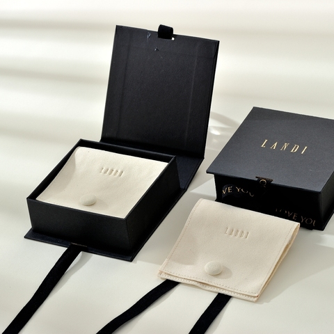 カスタムロゴスエードブレスレットネックレスジュエリー包装ボタンバッグマイクロファイバージュエリーポーチジュエリー包装ボックスカードインサート付き